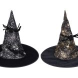 Pălărie de vrăjitoare stilată pentru carnaval, petreceri și Halloween. Disponibilă în două versiuni elegante – aurie și argintie. Un accesoriu grozav pentru costum, care adaugă ținutei tale o atmosferă misterioasă și un efect instantaneu.