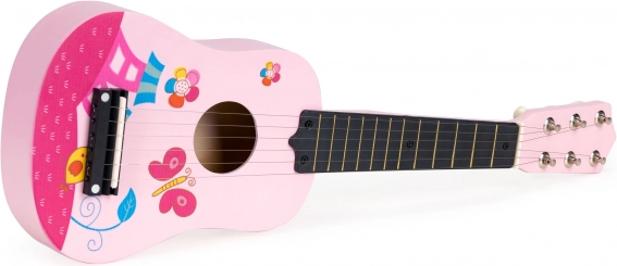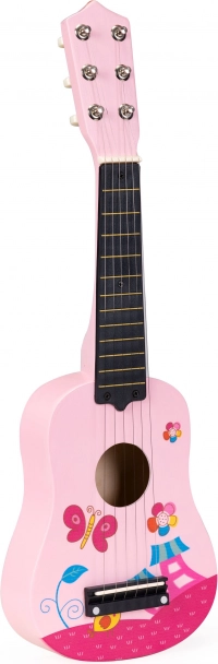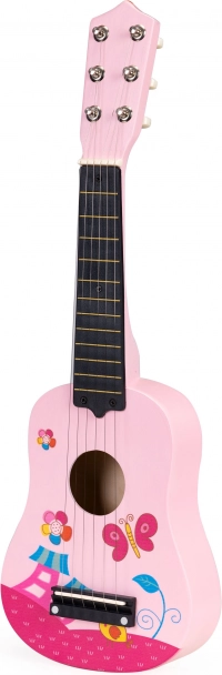 Chitară pentru copii din lemn marca ECOTOYS este destinată copiilor de peste 3 ani. Datorită corzilor acordabile, copiii pot învăța să cânte cântece simple sau mai complexe, iar întreaga familie poate performa împreună acasă. Cântatul la chitară ajută la dezvoltarea imaginației, motricității fine și a simțului ritmului.