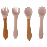 - Materiale sigure: silicon alimentar fără BPA, părți ale tacâmurilor din lemn