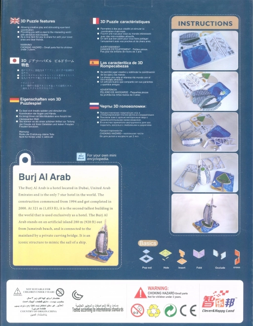 Puzzle-ul 3D Burj Al Arab va încânta cu siguranță orice pasionat de arhitectură. Acest model 3D detaliat al iconicului hotel, cunoscut ca „vela”, aduce o parte din Dubai direct în casa dvs.