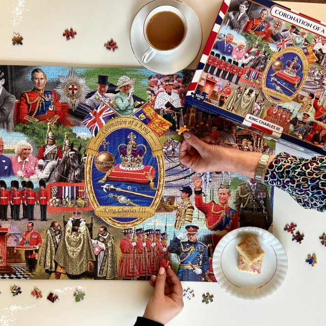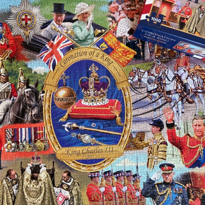 Puzzle Încoronarea regelui este un puzzle splendid format din 1000 de piese, care readuce la viață un moment istoric chiar în camera ta de zi. Ideal pentru iubitorii de istorie și puzzle!