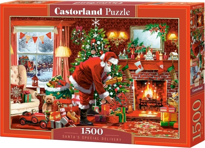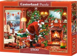 Descoperiți magia sărbătorilor cu puzzle-ul „Livrarea specială a lui Moș Crăciun” de la Castorland, alcătuit din 1500 de piese tăiate cu precizie.