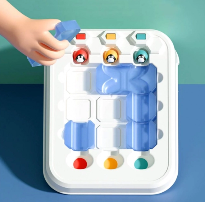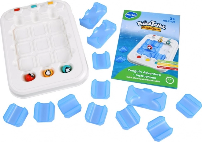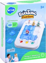 Jocul Aventura Pinguinului este destinat micuților care iubesc provocările. Copiii vor avea parte de 60 de sarcini divizate pe nivele de dificultate - marcate prin culori și stele. Jocul se poate configura simplu conform unor instrucțiuni incluse, prin plasarea pieselor și a pinguinilor pe tablă. După aceea, tinerii jucători trebuie să organizeze traseul pinguinilor astfel încât fiecare bilă să ajungă în orificiul corect. Nu este permisă schimbarea pieselor în timpul jocului, ceea ce face jocul și mai palpitant.