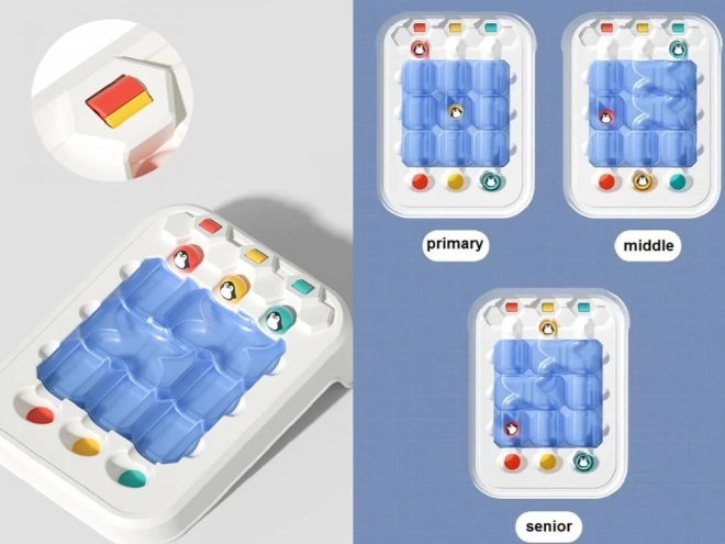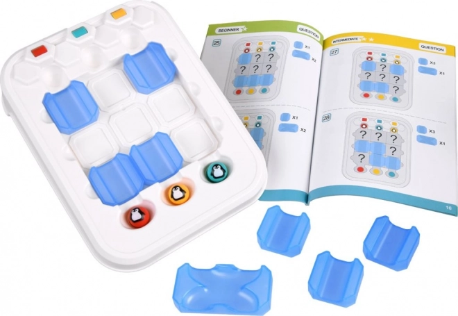 Setul include tot ce este necesar pentru rezolvarea sarcinilor, inclusiv: tabla de joc, bilele pinguinilor veseli și elemente de labirint. Dimensiunile bazei de joc asigură o experiență de joc compactă, dar distractivă.