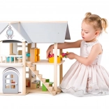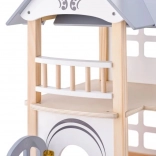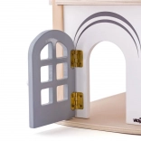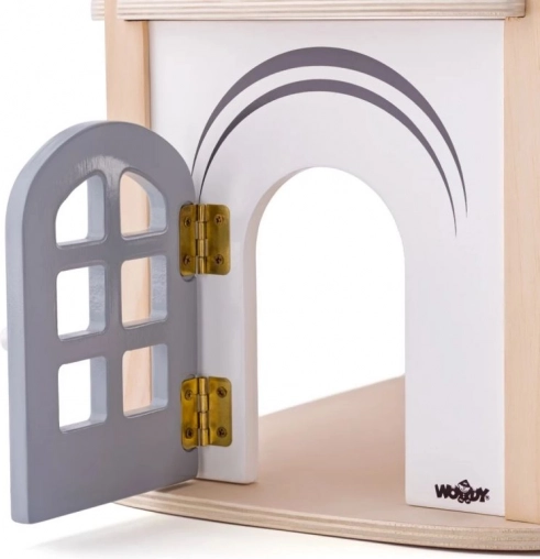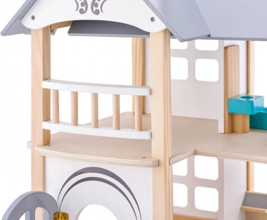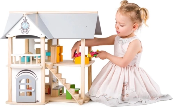 Această căsuță pentru păpuși frumos realizată este un accesoriu ideal pentru camera copiilor. Cu dimensiuni de 53 x 32,5 x 51 cm, oferă suficient spațiu pentru plasarea mobilierului inclus. Căsuța este fabricată din lemn natural, cu accente pastelate, și este potrivită pentru copii de la 3 ani.