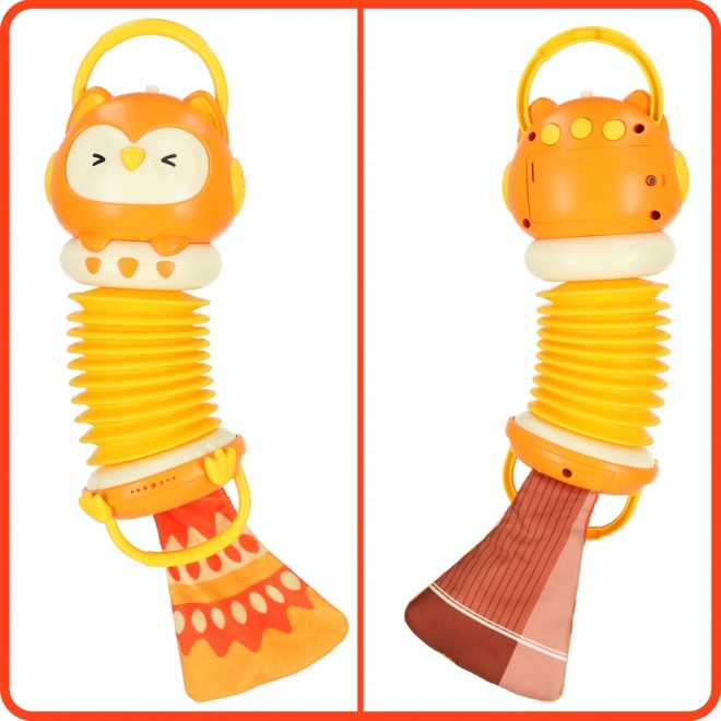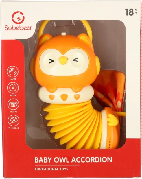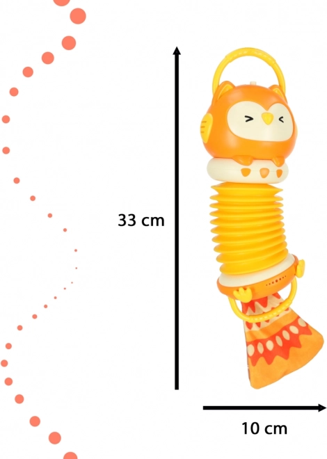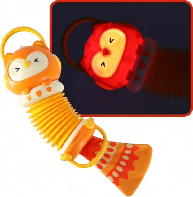 Cu acest acordeon pentru joacă, copiii se vor bucura de ore de distracție și își vor dezvolta atât motricitatea cât și simțul muzical. Este echipat cu iluminare și un difuzor pe care micii artiști talentați îl vor aprecia. De asemenea, include o coadă foșnitoare, care îi va captiva pe copii și le va stimula percepția tactilă.