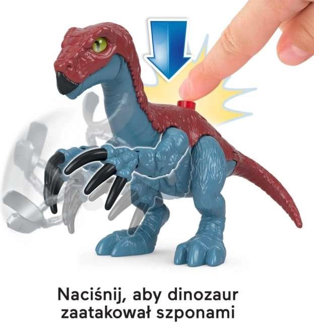 Intrați în lumea JURASSIC WORLD cu setul detaliat de la Imaginext. Therizinosaurus, cu buton roșu pe spate, pune în mișcare membrele anterioare și se poate elibera din hamul montat, în timp ce curajosul Owen este pregătit pentru orice aventură. Setul susține joaca creativă și de rol și oferă copiilor ore întregi de distracție sigură.