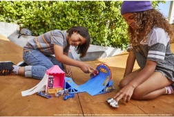 Pătrundeți în lumea skateboardingului cu Setul parc de skate distractiv Hot Wheels, proiectat în colaborare cu legenda Tony Hawk. Acest set vine echipat cu rampe, balustrade, semirampe și butoane pentru activarea muzicii motivante. Este ideal pentru a realiza trucuri incredibile cu degetele și include o pereche de pantofi detașabili pentru o experiență autentică. Puteți extinde parcul de skate adăugând alte seturi și astfel crea un spațiu imens pentru distracție fără sfârșit. Toate piesele sunt vândute individual și pot varia în culori și modele.