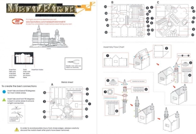 Experimentați emoția cu puzzle 3D Castelul Neuschwanstein de la Metal Earth. Acest model este o piesă fascinantă și decorativă, care va impresiona pe orice iubitor de arhitectură istorică. Este realizat din plăci de oțel detaliate, care pot fi ușor asamblate cu ajutorul încuietorilor. Pachetul include 3 plăci de oțel și instrucțiuni, dar uneltele nu sunt incluse.