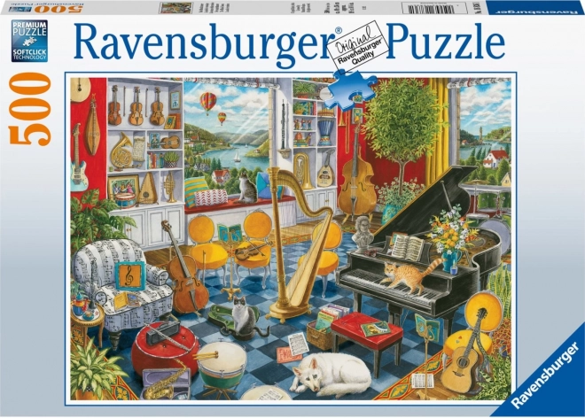 Descoperiți plăcerea asamblării de calitate cu puzzle-ul Ravensburger – motivul Cameră muzicală cu 500 de piese oferă relaxare, antrenament al concentrării și o imagine finală superbă cu dimensiunile de aprox. 49 × 36 cm.