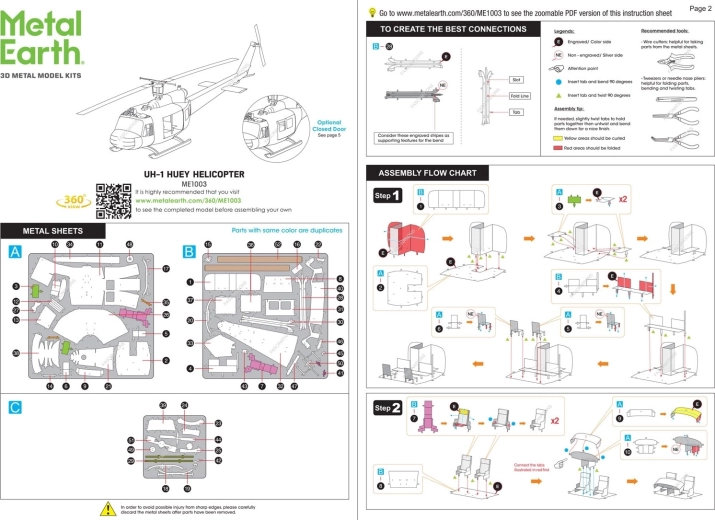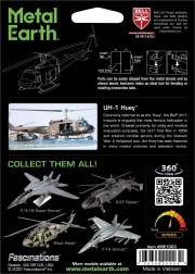Set pentru realizarea unui model 3D metalic fascinant. Asamblarea puzzle-ului METAL EARTH necesită răbdare și îndemânare. Rezultatul muncii însă compensează pe deplin efortul depus. Miniaturile sunt o decorațiune impresionantă și captivantă. Din foi pătrate de oțel vei obține modele detaliate și fascinante. Aspectul autentic al puzzle-ului 3D METAL EARTH este obținut datorită gravării laser detaliate. Uneltele nu sunt incluse în pachet. PROCEDEU DE LUCRU: Scoateți piesele din foile metalice; dacă este necesar, folosiți un clește tăietor mic (neinclus). Piesele se îmbină între ele cu ajutorul unor încuietori formate dintr-un cârlig (bănuș) și o gaură. Îndoiți cârligul cu un clește mic și subțire (neinclus) și îmbinați treptat toate încuietorile până când obțineți o piesă de măiestrie foarte realistă!