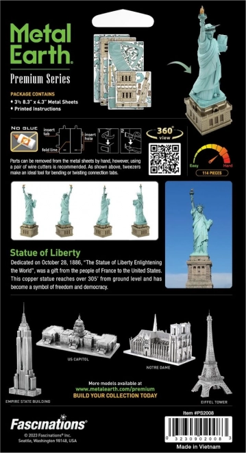 Bucură-te de o experiență unică de construire a unei replici realiste a Statuii Libertății din metal. Din foițe subțiri de oțel ia naștere, datorită grăvării laser, un model fidel, cu detalii fine ale coroanei, torței și piedestalului. Modelul final va deveni un accent de design remarcabil în interior.