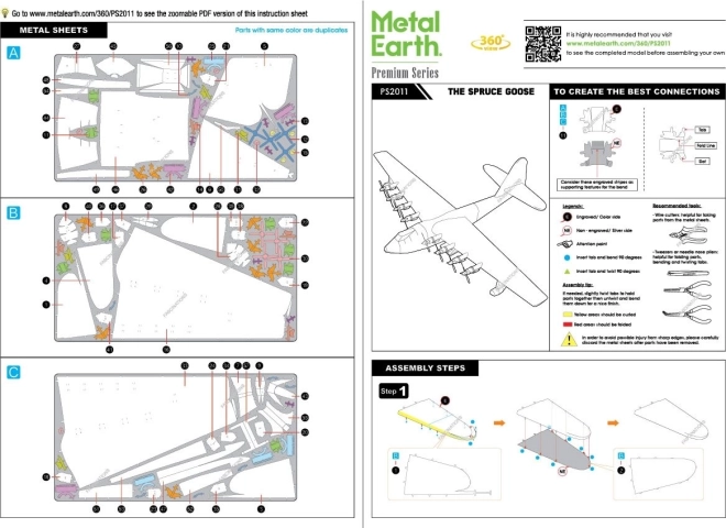 Din foi metalice plate vei asambla o replică detaliată a legendarului uriaș hidroavion cunoscut ca Spruce Goose. Datorită gravurii laser ies în evidență liniile fine ale fuselajului, aripile și cele opt unități de propulsie. Modelul este ideal ca decor elegant pentru birou sau vitrină și va încânta orice pasionat de aviație și tehnică.