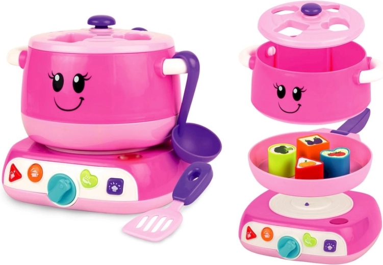 Copiilor le place jocul de-a casa și joaca de rol. Oala fermecată pentru dulciuri vorbește în limba poloneză în timpul jocului. Oala și capacul ei funcționează ca o sortatoare de forme. Setul include o oală zâmbitoare, o tigaie detașabilă, o spatulă și o linguriță. Are elemente interactive, 4 butoane colorate și un comutator rotativ. Sfârșitul gătitului este semnalizat de un indicator luminos.