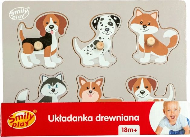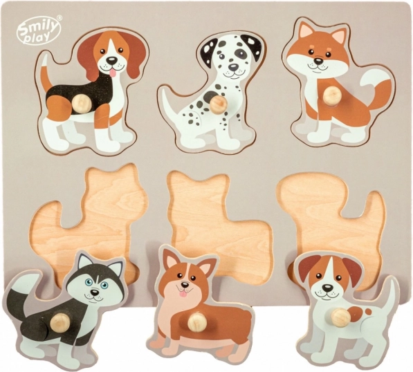 Fiecare locaș al planșei are o formă diferită, iar culorile compoziției reprezintă diferite rase de câini.