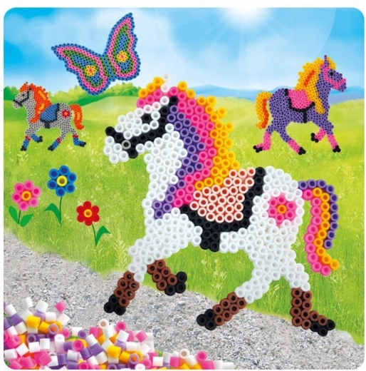 Așază mărgelele colorate pe placa de plastic inclusă. Când toate mărgelele sunt la locul lor, cere ajutorul mamei sau al tatălui; împreună puteți fixa imaginea.