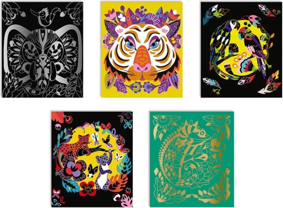 Descoperă un set creativ pentru copii care îi va distra ore în șir: imaginile de zgâriat Animalele lumii de la JANOD. Prin zgâriere, copiii îndepărtează treptat stratul colorat și dezvăluie motive frumoase cu animale, dezvoltând motricitatea fină, răbdarea și atenția la detalii. Ideal atât acasă, cât și în călătorii.