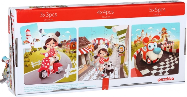 Puzzlika Povești Fericite 3 în 1 este un puzzle distractiv proiectat special pentru copiii mici. Fiecare set conține 50 de piese solide și durabile, din care se pot forma trei imagini separate cu dimensiuni de 25 x 25 cm. Fiecare imagine are un număr diferit de piese: 3x3, 4x4 și 5x5. Producția puzzle-ului folosește carton stratificat de înaltă calitate, cu suprafață lucioasă, fabricată din lemn cultivat ecologic. Puzzle-ul poate fi curățat ușor cu o cârpă umedă.