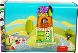 Setul conține 10 șabloane de hârtie, pe baza cărora se pot construi căsuțele. Piesele magnetice din carton dur cu suprafață lucioasă pot fi șterse cu ușurință cu o cârpă umedă. Fabricat din lemn ecologic și destinat copiilor de la 3 ani. Fabricat în Europa.