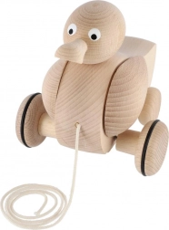 Această jucărie clasică de tras este realizată din lemn natural și concepută pentru joacă sigură și distractivă. Rața se mișcă drăgălaș în timpul deplasării și își mișcă capul, încurajând copiii să mai facă pași și să exploreze. Se remarcă prin construcție solidă și margini netede pentru o prindere confortabilă de către mânuțele mici.