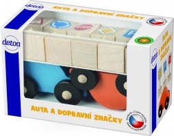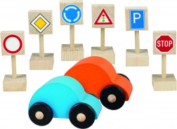 - 2 mașinuțe din lemn, 6 indicatoare rutiere