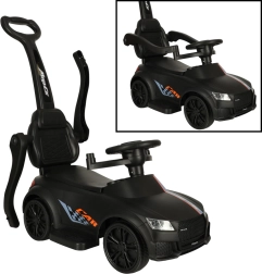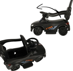 O mașinuță pentru copii cu design de curse care combină funcțiile unei mașinuțe de împins cu picioarele și ale unei jucării de împins. Datorită construcției solide din plastic, scaunului confortabil cu spătar înalt și barelor laterale de siguranță, este ideală pentru primele plimbări acasă și afară. Luminile și sunetele adaugă atmosfera unei curse adevărate.