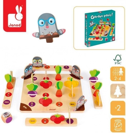 Joc de familie din lemn, distractiv, pentru 2–4 jucători de la marca JANOD, în care colectezi recolte în coș și, în același timp, eviți cârtițele. Dezvoltă viteza, spiritul de observație, răbdarea și recunoașterea culorilor. Execuție de calitate din lemn, ilustrații frumoase și reguli simple fac din acest joc un cadou ideal pentru copii și adulți.