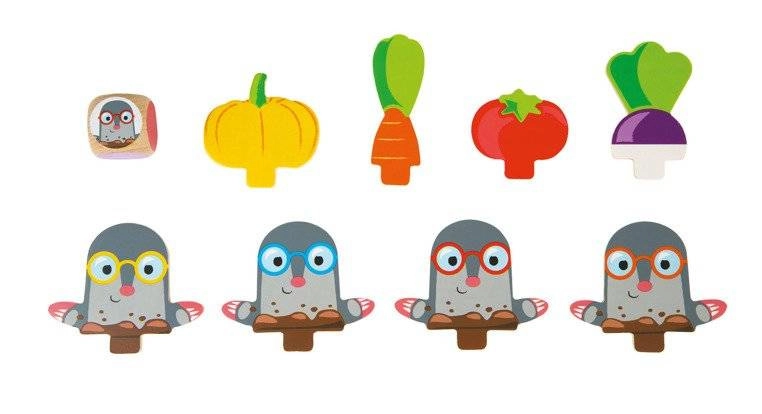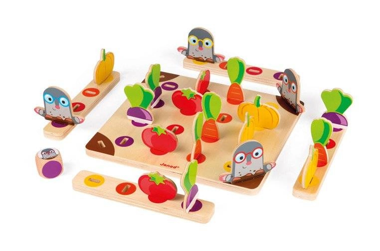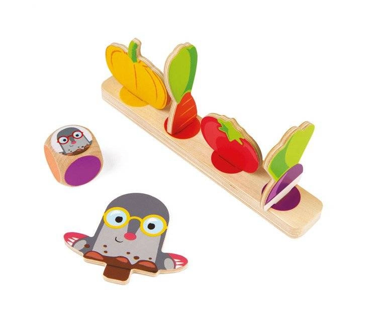 Acest joc de societate din lemn îi pune pe jucători în rolul grădinarilor: pe tabla de joc cresc „straturi” colorate de roșii, morcovi, dovleci și sfeclă, iar în colțuri pândesc cârtițe. Arunci zarul – culoarea indică recolta pe care o pui în coș, iar cârtița îți poate opri temporar culesul. Câștigă cel care strânge primul câte o piesă din fiecare recoltă.
