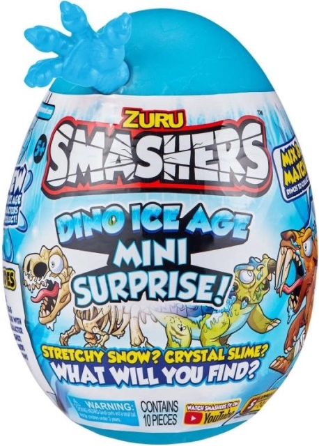 - 1 ou, 1 ou mini Smashers, 1 dinozaur de asamblat, 1 substanță elastică, 1 slime, 1 slime înghețat, 1 abțibild
