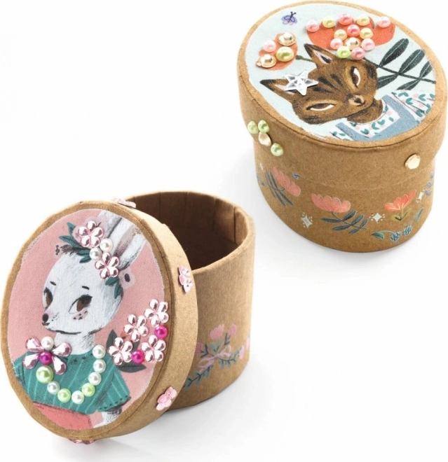 Descoperiți bucuria creației cu acest set creativ de la Djeco, care vă permite să creați 5 mini cutii unice decorate după fantezia voastră.