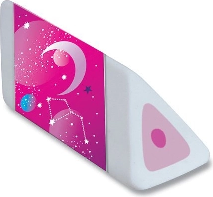Materialul fără PVC și ftalați este blând și durabil, astfel radiera rezistă îndelung și lasă notițele școlare și de birou curate. Fiecare piesă este ambalată în cutie de carton și vine în diverse motive colorate Cosmic, pe placul micilor și marilor iubitori ai spațiului.