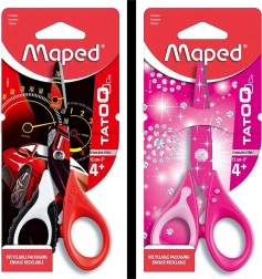 Descoperiți tăierea jucăușă și sigură cu foarfecele pentru copii Maped Tatoo Innovation. Datorită tehnologiei brevetate la nivel mondial și lacului decorativ special, oferă o tăiere lină, curată și totodată rezistență pentru creații zilnice la școală și acasă.
