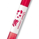 Fiecare cariocă combină un vârf conic pentru desen și un capăt cu ștampilă pentru decorare rapidă cu motive în culoarea cariocii.