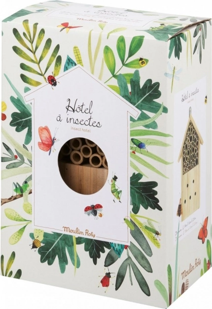 Hotelul pentru insecte de la marca Moulin Roty este o căsuță frumoasă din lemn, care atrage diferite specii de insecte, permițând observarea și studierea lor. Perfect pentru dezvoltarea curiozității copiilor și a relației lor cu natura. Acest hotel: