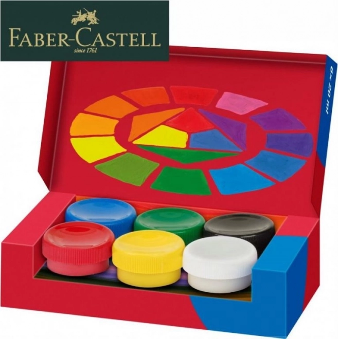 Setul de vopsele tempera Faber-Castell conține 6 culori intens pigmentate ideale pentru diverse suprafețe, aranjate în recipiente practice cu capac cu șurub.