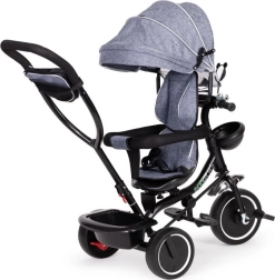 În plus față de scaunul rotativ, trotineta oferă și două coșuri de depozitare pentru jucăriile preferate. Datorită suportului pentru picioare pliabil, copiii pot să se relaxeze confortabil, în timp ce părinții au control deplin. Trotineta este echipată și cu trei roți și frână pentru oprirea în siguranță.