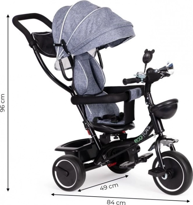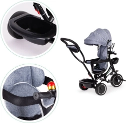 Trotineta ECOTOYS este proiectată pentru a oferi confort și siguranță copilului dumneavoastră. Trotineta dispune de un spătar moale și confortabil și centuri de siguranță care protejează copilul de căderi. Baldachinul pliabil protejează de ploaie și soare, în timp ce scaunul rotativ face ca urcarea să fie ușoară pentru cei mai mici copii.