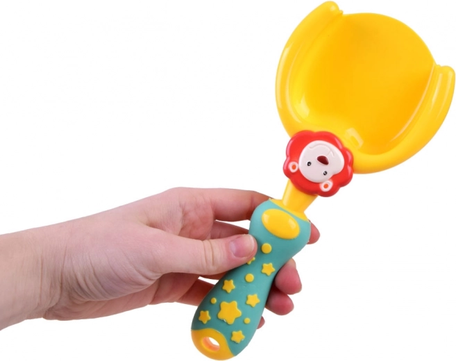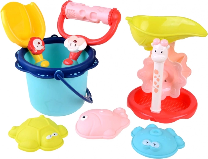 Acest set compus din 7 piese include tot ce are nevoie copilul dumneavoastră pentru joacă creativă în nisip. Găleata, lopățica, trei forme viu colorate și sita cu morișcă oferă nenumărate moduri de a dezvolta imaginația și motricitatea fină a copiilor. Joaca în nisip nu se va plictisi niciodată și cu acest set fiecare aventură va fi și mai distractivă. Datorită culorilor atractive și formelor interesante de animale, setul va fi îndrăgit de toți micii constructori.