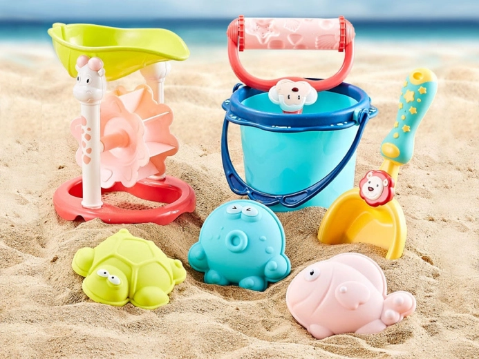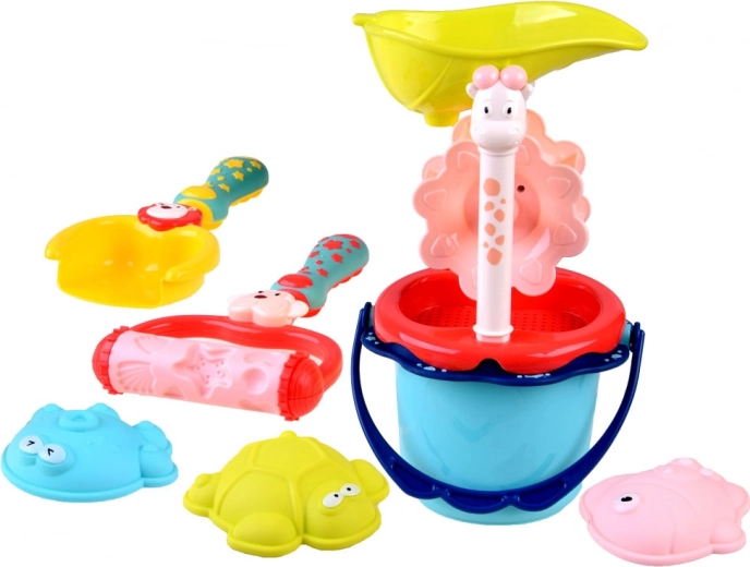 Include găleată, lopățică, forme și sită cu morișcă. Ideal pentru dezvoltarea creativității și învățării jucăușe a copiilor.