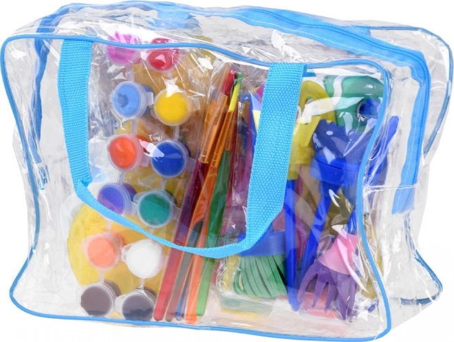 Geantă transparentă cu închidere pentru o organizare şi transport facil al materialelor de pictură.