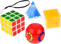 Setul include patru jucării unice care îmbunătățesc concentrarea și abilitățile motorii ale mâinilor. Ideal pentru relaxare și exercitarea gândirii logice.