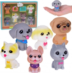 Setul de șase căței adorabili din cauciuc este completarea perfectă pentru orice copil care iubește animalele. Le folosesc la joaca într-un salon de câini, hotel pentru câini, grădiniță pentru cățeluși sau veterinar. Datorită execuției delicate și detaliilor realiste, cum ar fi ochii mari și expresiile dulci, aceste figurine sunt irezistibile.