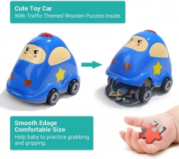 Dimensiunile mașinuței: cca 14 × 11 × 8 cm. Dimensiunea puzzle-ului asamblat: cca 21,8 × 17,8 cm. Avertisment: designul ambalajului poate varia.