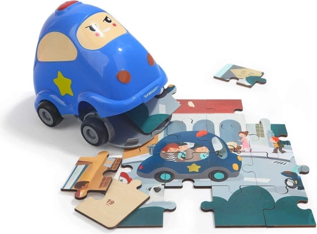Descoperiți bucuria asamblării cu TOP BRIGHT: în interiorul drăgălașei mașinuțe de poliție se ascunde un puzzle din lemn de calitate, cu tematică de transport. Mașinuța este din plastic rezistent, are roți funcționale și un capac care se deschide dedesubt, astfel încât toate piesele pot fi depozitate comod chiar în interior.
