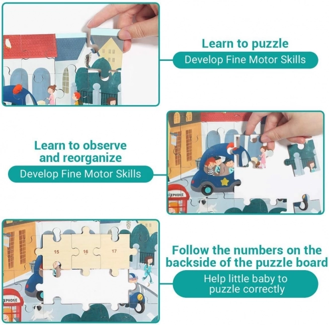 Fiecare piesă are un număr pe verso – copiii se orientează mai repede, își exersează logica, gândirea matematică și răbdarea. Ideal pentru primele puzzle-uri.