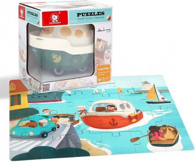 Descoperiți combinația isteață de puzzle și jucărie într-unul: puzzle din lemn cu tematica portului ascuns într-o bărcuță adorabilă din plastic pe roți. Fiecare piesă este numerotată pentru o asamblare mai ușoară, dezvoltă gândirea logică și matematică și, datorită spațiului practic de depozitare, puteți avea puzzle-ul mereu la îndemână. Completează perfect mini seria de mijloace de transport TOP BRIGHT și creează un puzzle panoramic.