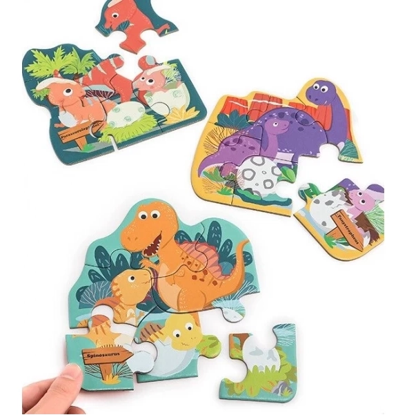 Acest puzzle jucăuș de la TOP BRIGHT dezvoltă motricitatea fină, răbdarea și imaginația copiilor. Fiecare dintre cele trei imagini cu dinozauri are 6 piese solide, iar datorită imprimeului și numerelor de pe spate, copiii recunosc ușor ce aparține împreună. Ideal pentru primele succese la asamblare și distracție acasă sau în călătorii.
