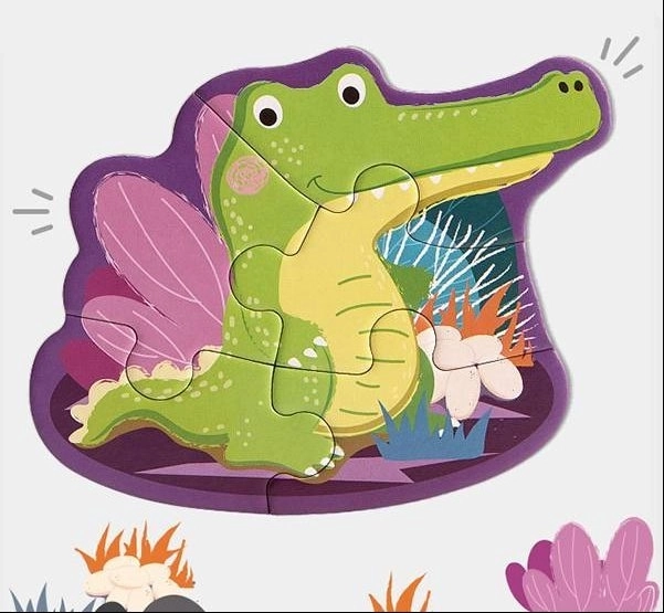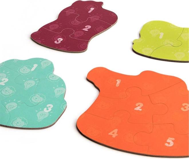 Acest set jucăuș include 4 puzzle-uri cu animale de dificultăți diferite (2, 3, 4 și 5 piese), astfel încât se adaptează perfect ritmului copilului dumneavoastră. Piesele sunt mari, rezistente și plăcute la atingere – ideale pentru primele asamblări.