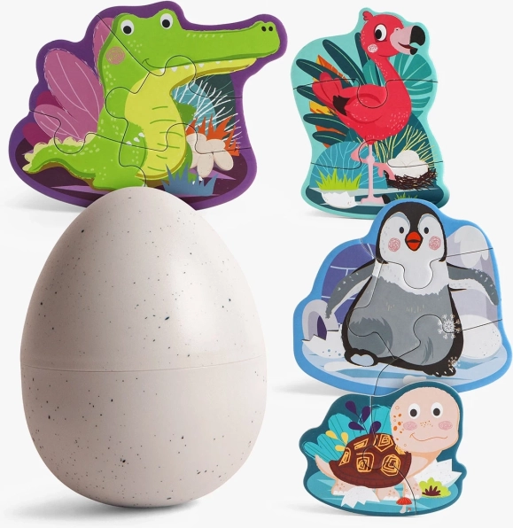 - 4 puzzle-uri cu animăluțe + ou de depozitare din plastic