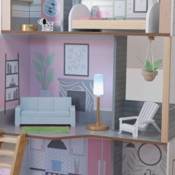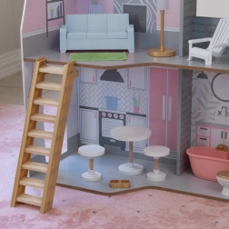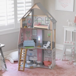 Căsuța din lemn pentru păpuși KidKraft Alina oferă copiilor un mediu realist pentru dezvoltarea imaginației. Cele trei niveluri bine gândite includ o bucătărie spațioasă cu colț de luat masa, living cu verandă, mansardă primitoare cu dormitor și a doua baie. Datorită amprentei înguste, se potrivește perfect și în camerele de copii mai mici.